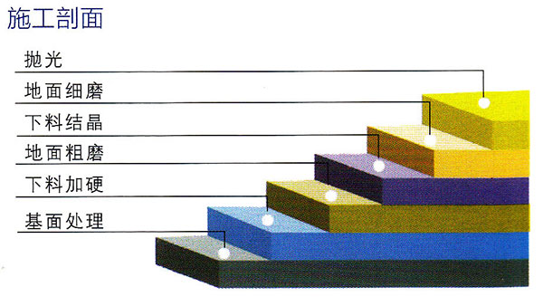 混凝土滲透型密封固化劑拋光系統(tǒng)是針對新舊混凝土地面通過侵泡混凝土密封固化劑與混凝土地面中所含的的半化水逆、游離鈣、氧化硅物質(zhì)經(jīng)過一系列化學反應,從而得到一個無塵、致密、高耐磨并且具有鋼鐵般硬度的混凝土地面;通過專用機械進行不同程度的粗磨、細磨、精磨、拋光等一系列工藝施工,從而得到一個美觀無塵、致密、高耐磨并且具有大理石般光澤的混凝土地面。
